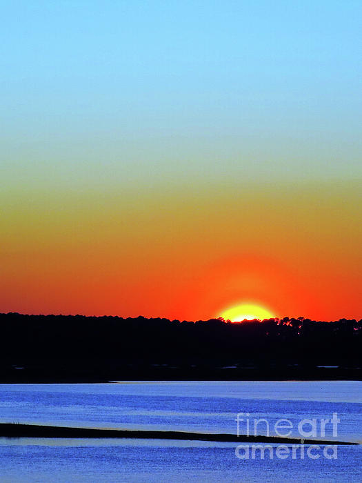 A vertical version of a sunset in late January 2020 taken from the observation deck of the Old Fort Pub on Hilton Head Island. There are beautiful sunsets in the Lowcountry of South Carolina, and this was one of the most spectacular I have seen.